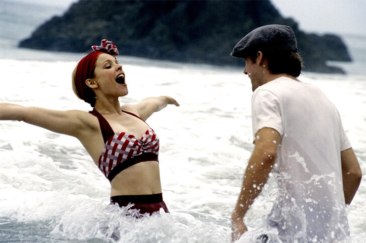 In the 2004 movie “The Notebook,” Rachel McAdams radiates joy in a maroon, white, and black checkered bikini, her arms outstretched towards Ryan Gosling. This iconic scene captures the essence of their characters’ enduring love, set against the backdrop of differing social backgrounds. The film, a tale of passion and perseverance, became a beloved classic, resonating with audiences worldwide.