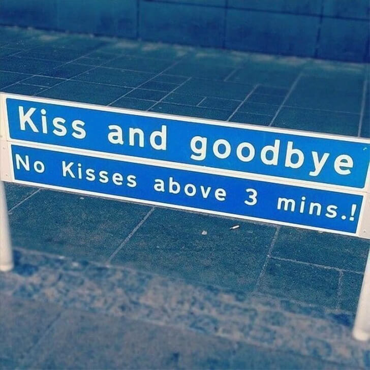 Sometimes, airport stewards have difficulty clearing cars or people congestion as loved ones try to say long goodbyes. Perhaps this sign made the authorities’ job easier, considering the airport is the third busiest in Denmark. It must be weird if they would employ staff who time the kisses!