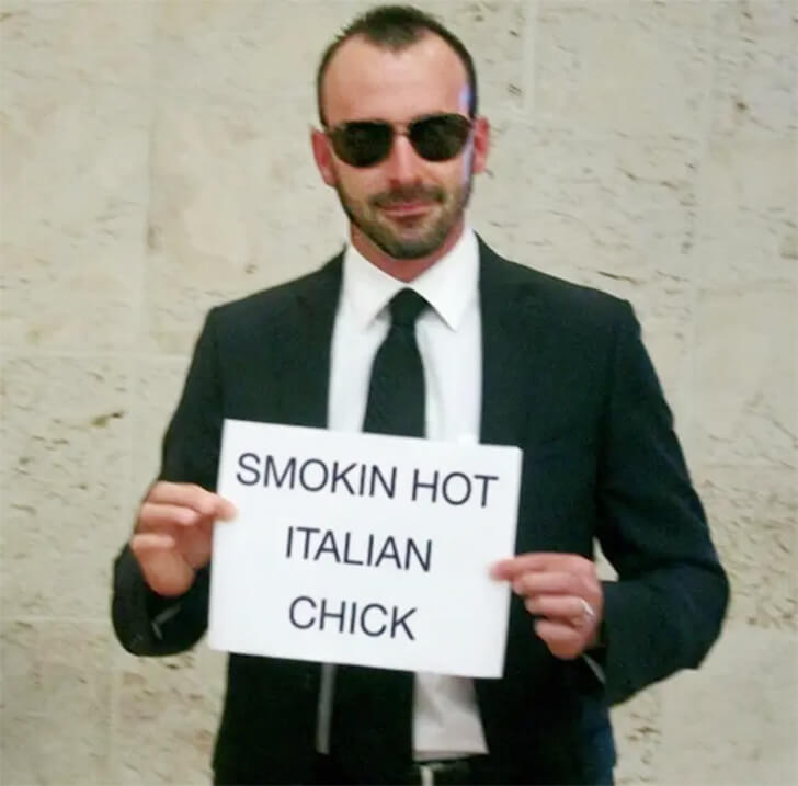Still on airport pickup signs, this one is one of the hilarious ones you’ll see. It would appear that the man is an airport car service driver trying to hit on his client by referring to her as “Smokin’ hot Italian chic.” However, it turned out that was not the case.