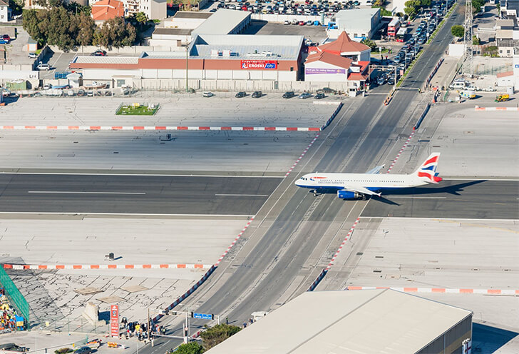 Railroad level-crossings are nothing unusual. But just how weird would it be to have a runway and a highway intersecting? Well, for the residents of Gibraltar, it’s nothing new. This photo shows the crossing between the Gibraltar International Airport runway and the four-lane Winston Churchill Boulevard.