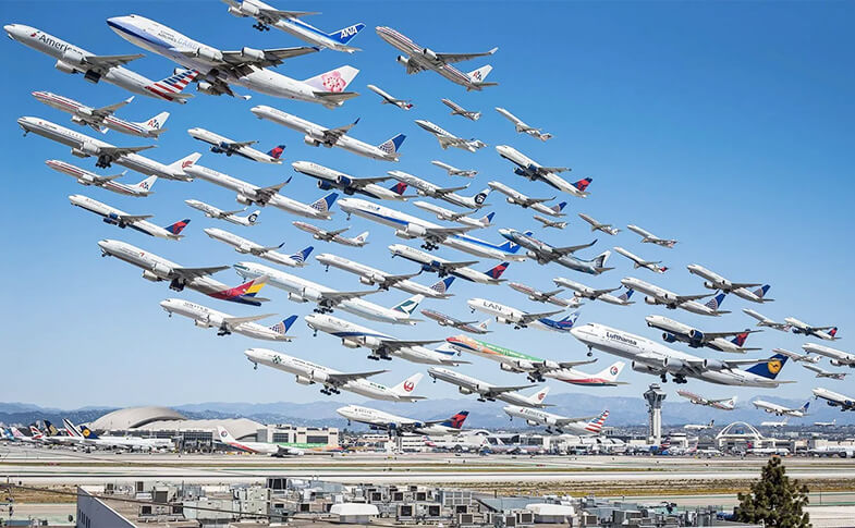 One of the best things about air travel is that you don’t have to deal with traffic jams. However, this picture taken at Los Angeles International Airport may convince you otherwise. No worries, though, as it’s a compilation of a day’s worth of airplane takeoffs and several landings at the airport.