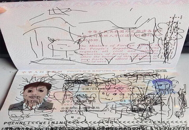 In 2014, Chen, a Chinese businessman, was traveling back home from South Korea when his son decided to get creative and scribble on his passport. The drawings practically invalidated the passport, which meant he could not get back home. To be fair, his son was just passing the time, but the airport staff was not enthusiastic about his artwork.