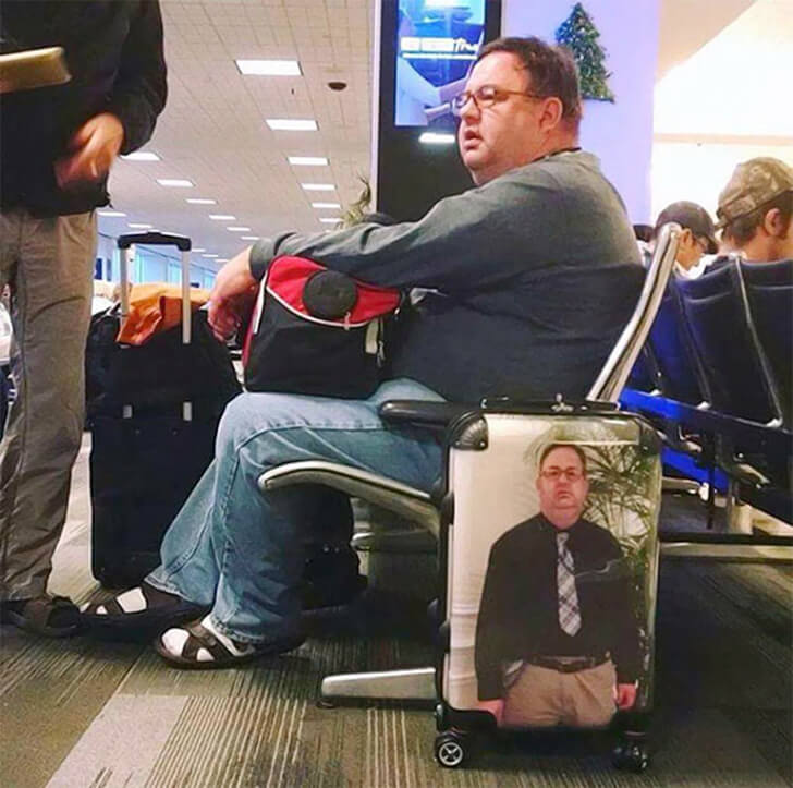 If you use air travel regularly, here’s a valuable tip you’ll not find anywhere else. It seems this man was tired of losing his bags or identifying them at the airport. He decided to have a photo of himself on his luggage. What genius!