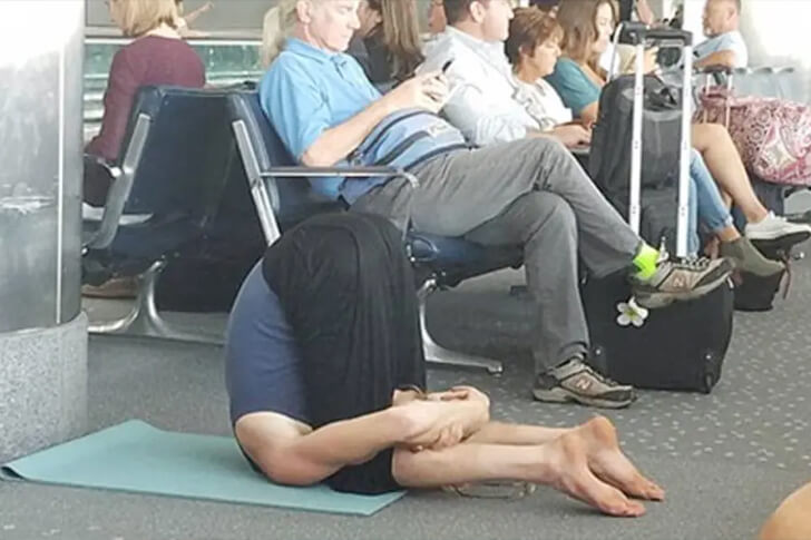 Despite being in transit, he couldn’t help but bring along his yoga mat and saw the perfect opportunity to do a few stunts on the airport floors. Usually, it would be considered weird, but in this man’s case, every other traveler seems oblivious to him!