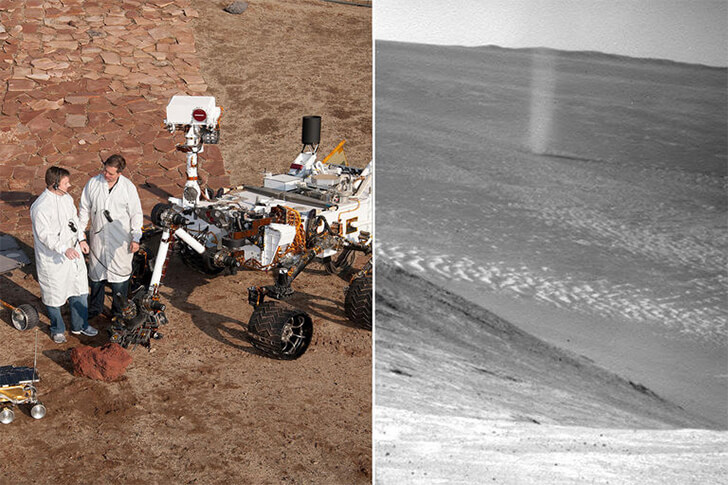 This dust devil was photographed by the Opportunity rover, validating previous beliefs about this phenomenon on Mars. NASA constantly works on implementing new rovers equipped with their weather-resistant systems. On a smaller scale, the winds on Mars are just as dynamic. Dust devils (swirling, wind-and-dust-filled columns) are common, and their trails may cover vast distances.