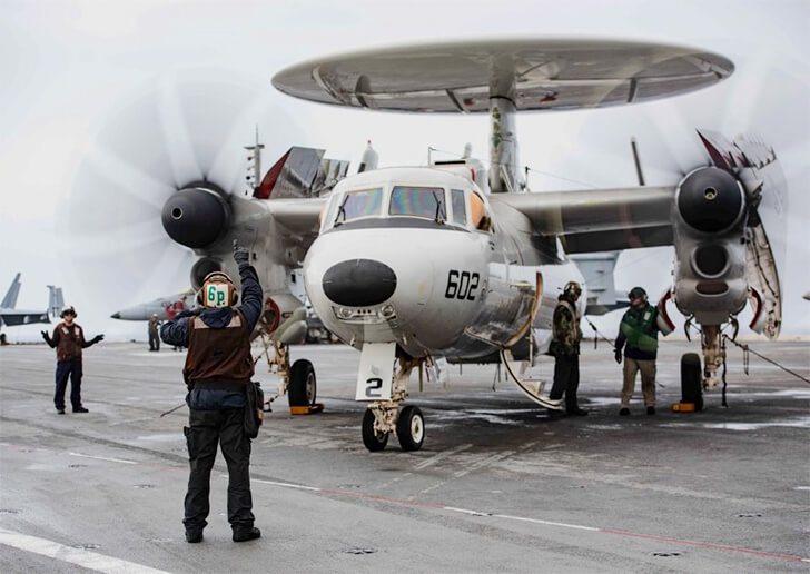 The Northrop Grumman E-2 Hawkeye serves an important role in the United States Navy. Simply put, it warns the naval task force of any approaching airborne threats and supplies fighter aircraft with positional data. It carries these duties sitting at an impressive 25,000 feet in the air.