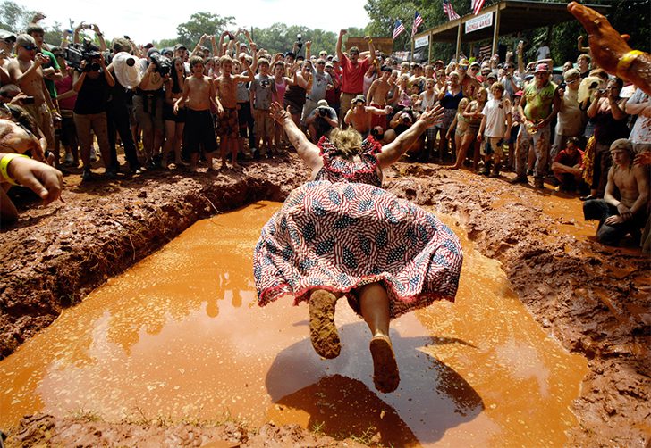 Southern traditions hold mud in high regard. Celebrations like Louisiana Mudfest and Mountain Mud Festival embody this. Unconcerned about smears and stains, they revel in these festivities with full gusto. The true Southern attitude is to leap into life, even if it’s a muddy pit, just as the woman is doing, embodying the saying, ‘You don’t think when you’re having fun.’