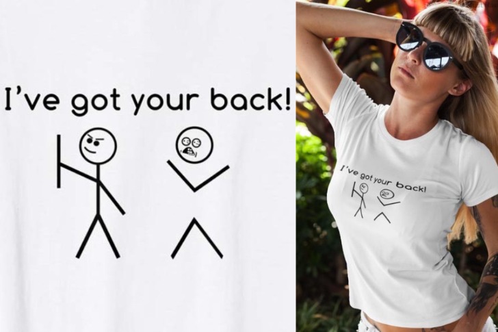Doch hier wird das Ganze wortwörtlich genommen: zwei Strichmännchen, bei denen das eine buchstäblich das Rückenteil des anderen in der Hand hält. Dieses Shirt erinnert uns daran, dass ein wenig Humor genau das ist, was wir brauchen, um den Tag zu meistern. Aber Vorsicht, wenn du dieses Shirt trägst, könnten die Leute sich fragen, ob du ihnen im übertragenen Sinne – oder vielleicht sogar buchstäblich – den Rücken stärkst!