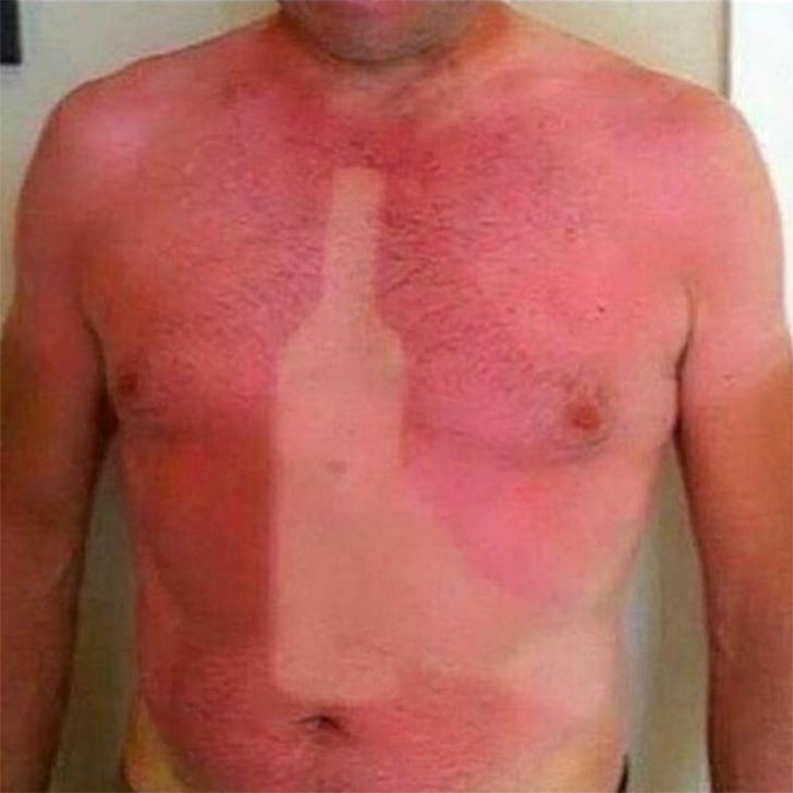 Garder des souvenirs sous forme de photos ou de vidéos est une pratique courante en passant un bon moment, mais cet individu ne s’est pas arrêté là. Il a gardé une marque physique d’une bonne sieste à la plage, laquelle à inclut toute une bouteille de boisson alcoolisée à portée de main. Il faut espérer qu’il se protège mieux la prochaine fois, bien que cette marque ne soit pas difficile à effacer.