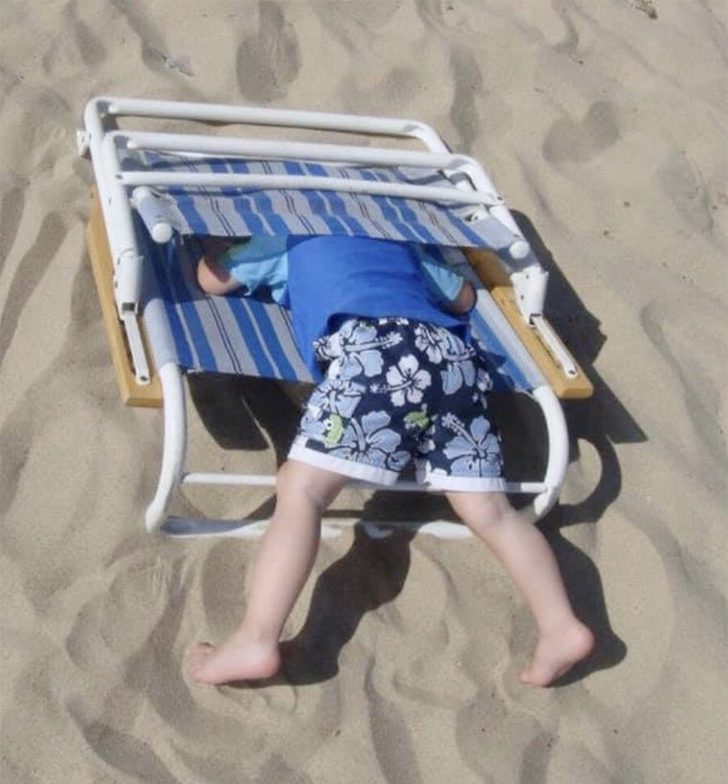 Les chaises longues améliorent considérablement l’expérience d’une journée à la plage. Réglables et légères, elles peuvent être placées n’importe où pour garantir le confort. Ce petit garçon, épuisé par la chaleur, n’avait plus la force de déplacer sa chaise et a décidé de s’en débarrasser sur le champ.