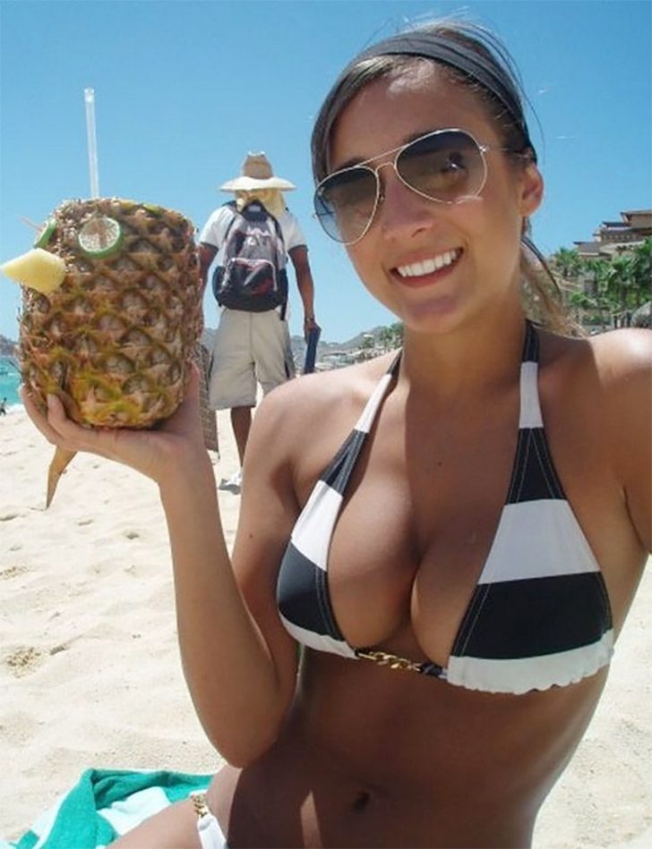 Alors que Bob l’éponge vis dans un ananas sous la mer, cette jeune femme semble avoir tiré un meilleur parti de ce fruit. Il faut dire que les ananas ne poussent pas sous l’eau et leur plus grande proximité avec la mer est d’être un rafraîchissement à la plage. Alors que la jeune femme aurait pu poser dans un meilleur décor, son jus d’ananas n’en demeure pas moins délectable.