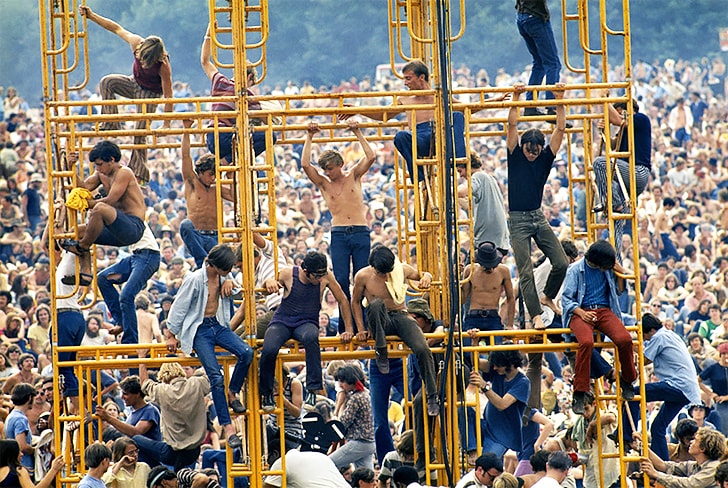 Dato che vi erano mezzo milione di persone presenti al festival, la maggior parte di loro non erano neanche vicino al palco per godere dello spettacolo. Questa foto mostra come alcuni ragazzi abbiano fatto fatica per cercare di avere una visuale migliore del palco e degli artisti.