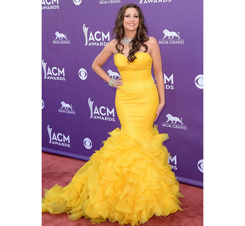 Danielle Peck porte cette robe de sirène colorée à ravir. En effet, tous les regards étaient sur elle ce soir-là. Sa tenue comportait une jupe à volants, et elle n’avait pas besoin de beaucoup d’accessoires pour l’accompagner, car la robe en elle-même fait sensation. Un bracelet et un collier incrustés de diamants suffisaient pour compléter l’effet élégant.