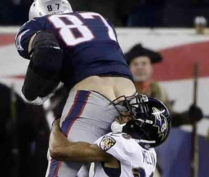 Hier wurde ein Moment zum Lachen oder auch zum Fremdschämen festgehalten. Bei einem American Football Spiel ist einer der Sportler gerade dabei, seinen Gegenspieler mit einem Tackle daran zu hindern, mit dem Ball bis zur Ziellinie zu kommen. Doch dabei blieb wohl der Gesichtsschutz seines Helmes an der Hose der Nummer 87 hängen und zog diese im Eifer des Gefechts herunter. Dem Publikum bot er freie Sicht auf sein Gesäß. Zum Glück drückte der Fotograf genau in diesem Moment auf den Auslöser, sodass wir alle an diesem unglaublich lustigen Moment teilhaben konnten. Der volle Körpereinsatz des Spielers hat sich hoffentlich gelohnt und konnte Punkte für das gegnerische Team abwenden.