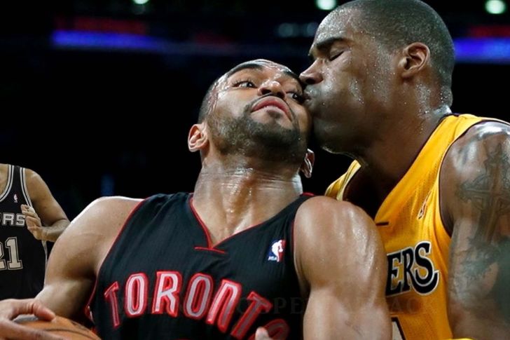 Kobe Bryant hätte sicher gelacht, wenn er dieses Foto gesehen hätte – einer der 10 besten Basketballspieler der NBA wurde auf einem zärtlichen Foto mit einem seiner Gegner verewigt. Während eines Spiels, als er versuchte, den Ball zu stehlen und die “Toronto Raptors” nicht punkten zu lassen, stieß Kobe mit Alan Anderson zusammen. Solche Vorfälle passieren oft, besonders auf professioneller Ebene. Doch dieses Mal wurde das Publikum Zeuge… eines Kusses. Obwohl es unbeabsichtigt war, hat die Person, die das Foto gemacht hat, es zum richtigen Zeitpunkt gemacht – Alan schien diesen Moment der Zärtlichkeit von seinem Gegner tatsächlich nicht zu erwarten!