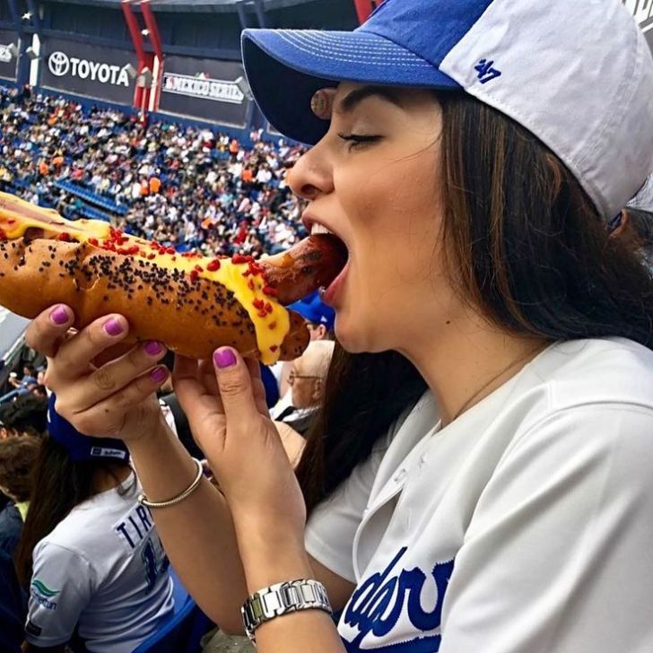 Auf diesem Foto scheint die junge Frau noch nicht zu wissen, zu welcher Sauerei sie geht – vielleicht war sie zu hungrig, oder sie hat nur für die Zeit des Fotos posiert. Tatsache ist, dass nach dem “Klick” der Kamera oder des Handys der schöne, viele und leckere Käse auf dem Hotdog nicht mehr auf der Wurst ist. Hoffen wir, dass nichts davon passiert ist, obwohl wir uns die Reaktion der jungen Frau vorstellen können – die erste Regel sollte sein, niemals mit weißer Kleidung in die Öffentlichkeit zu gehen. Oder eine Methode zur Lösung dieser Schmutzprobleme könnte viel einfacher sein, wie das Mitführen einer Serviette oder eines Taschentuchs!