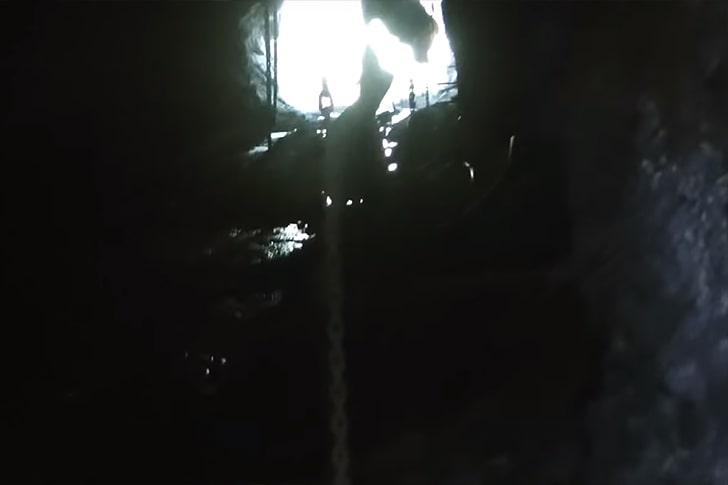 With light being scarce, the mine’s creepy factor dialed up as he walks farther in the shaft. That’s when Frank noticed some of the hanging metal chains inside swinging on their own, and the temperature around him seemed to drop suddenly.