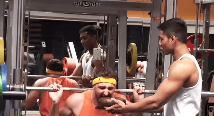 Dieser Typ bekommt seine Spickmahlzeit vielleicht ein bisschen zu früh. Vielleicht ist es sogar der falsche Zeitpunkt, wenn man bedenkt, dass er immer noch damit beschäftigt ist, die Kalorien zu verbrennen und die Muskeln aufzubauen. Vielleicht dachte sein Partner, dass es eine gute Möglichkeit ist, ihn zu motivieren, denn nichts hebt die Stimmung bekanntlich so sehr wie Schokolade.