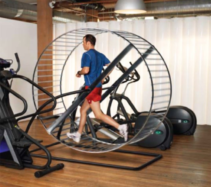 Was gut genug für eine Maus ist, ist auch gut genug für einen Menschen. Das ist wie das Hamsterrad, das man in Hamsterkäfigen für Haustiere findet, auch wenn es für Menschen nicht so einfach ist, darauf zu laufen. Dieses Foto könnte mit Photoshop bearbeitet sein, vor allem, wenn du es dir genauer ansiehst.