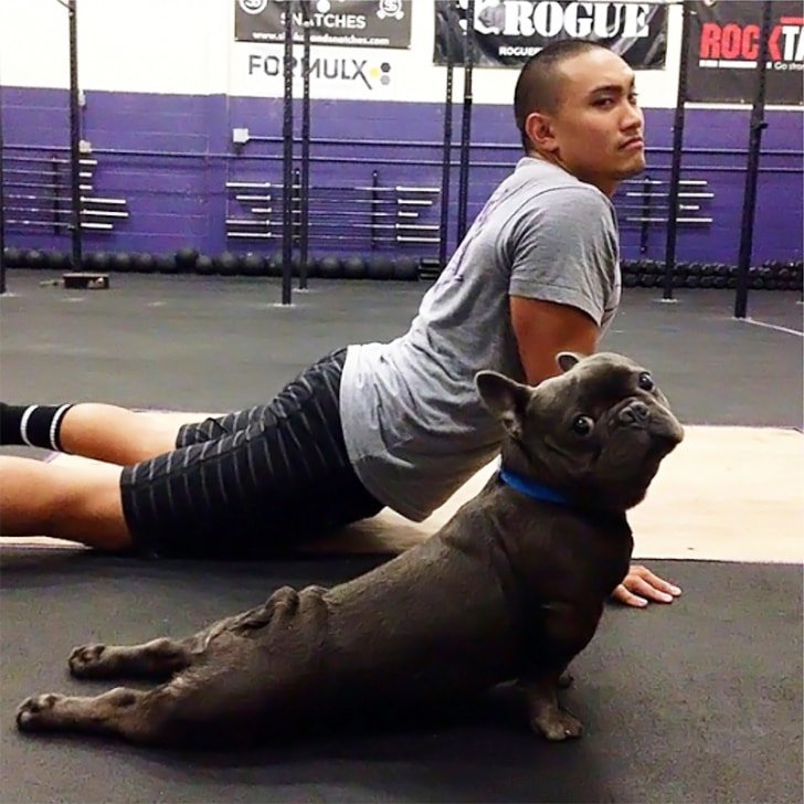 Endlich hat es jemand gewagt, seinen Hund mit in eine Yogastunde zu nehmen, damit alle sehen können, wie die Abwärts- und Aufwärtsbewegungen eines Hundes aussehen und ob es Hunden überhaupt möglich ist Yoga zu machen. Dieser Besitzer scheint seinen Hund jedenfalls ziemlich gut in der Kunst des Yoga ausgebildet zu haben.