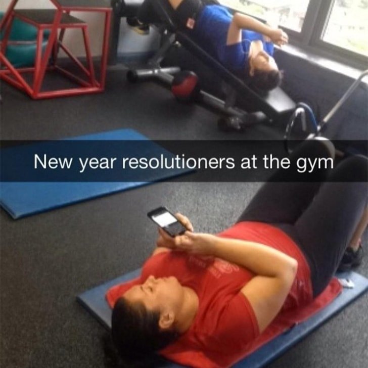 So wie die Frau auf dem Bild, die sich vielleicht vorgenommen hat, ein Gym zu besuchen. Das Problem ist nur, dass sie nicht das tut, was sie tun muss, um ihre Zeit dort sinnvoll zu gestalten. Stattdessen arbeitet sie nur ihre Daumen ab. Und auch der Mann im Hintergrund sieht nicht so aus, als würde er sein selbst auferlegtes Training ernst nehmen.