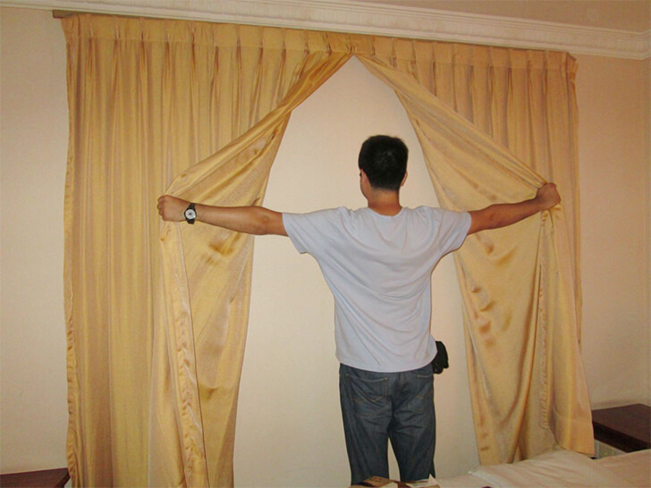 The only thing he could do was stare at the blank wall with a puzzled look. Indeed, the curtains served as a cruel addition. They may or may not bring this up with the customer service. Fontan Architecture stated that hotel rooms require windows for light and air necessities.
