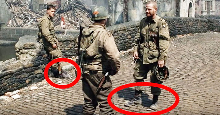 Throughout the film “Saving Private Ryan,” some characters wear light brown boots while others sport black jump boots. This is only half correct for the time period, as black combat boots were not introduced until the 1950s, after World War II. During the war, soldiers typically wore light brown or tan boots.