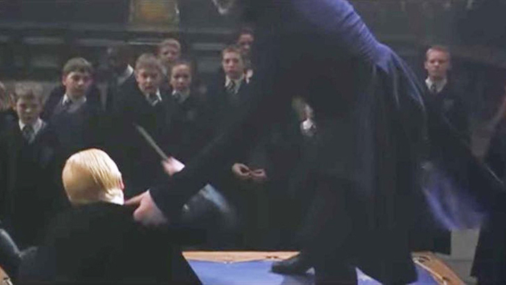 In the second “Harry Potter” movie, “Harry Potter and the Chamber of Secrets,” there’s a noticeable mistake during the duel scene between Harry and Draco. If you look intently among the students watching the duel, there’s someone who’s clearly not a child—it’s a crew member!