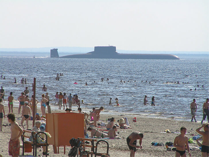 Machen wir ein Spiel: Kannst du das schockierende Detail auf dem Bild erkennen? Hier ist ein Hinweis: Dieses Foto wurde an einem russischen Strand aufgenommen. Wenn deine Antwort lautet: “Da liegt ein riesiges U-Boot UB-40”, hast du falsch geantwortet. An einem russischen Strand ist der Anblick eines U-Boots nicht so schockierend wie der Anblick der Sonne…
