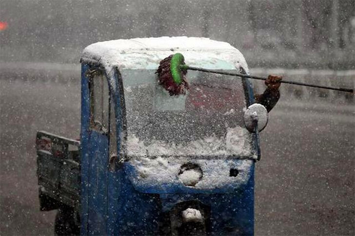 Du findest dieses Bild vielleicht lustig, aber wir finden, es ist ein inspirierendes Zeugnis für Russlands Anpassungswillen. Wenn es schneit und dein komisches kleines Auto keine Windschutzscheibe oder funktionierende Scheibenwischer hat, ist ein Wischmopp alles, was du brauchst, um die Straße im Auge zu behalten.