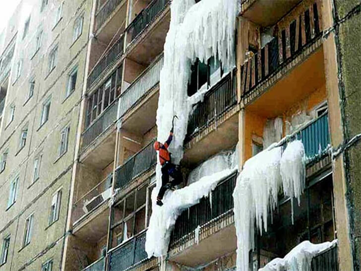 Russland ist die Heimat des Elbrus, des höchsten Berges in Europa, der 5.642 Meter über dem Meeresspiegel liegt. Doch manche Russen würden lieber in ihrer Nachbarschaft klettern. So wie der Mann auf dem Bild, der sein Bestes gibt, um ein eingefrorenes Wohnhaus in seiner Gegend zu erklimmen.