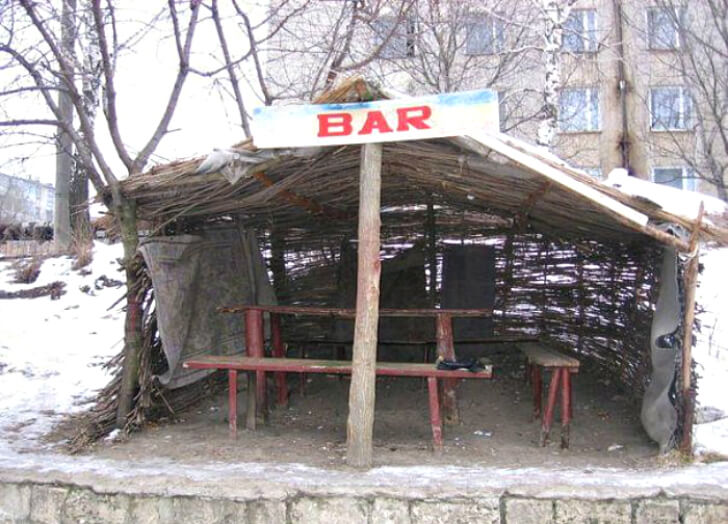 Jede Kultur hat ihre eigene Art von Bar. In Amerika gibt es das Diner, im Vereinigten Königreich den Pub und in Spanien und Italien das Café. Aber in Russland musst du nicht in einem schicken Gebäude sein, um deinen Drang zu trinken zu rechtfertigen. Alles, was du brauchst, ist eine behelfsmäßige Bar, die hauptsächlich aus Holz gebaut ist, und so viele Wodkaflaschen, wie du auftreiben kannst.