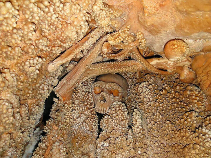 The collection caused stalagmites to form and encapsulate the remains. The eerie sight combines prehistoric life with geological wonders, turning the cave into a natural museum. This remarkable find offers a glimpse into our distant past, with nature creating a stunning display that feels both otherworldly and deeply rooted in history.
