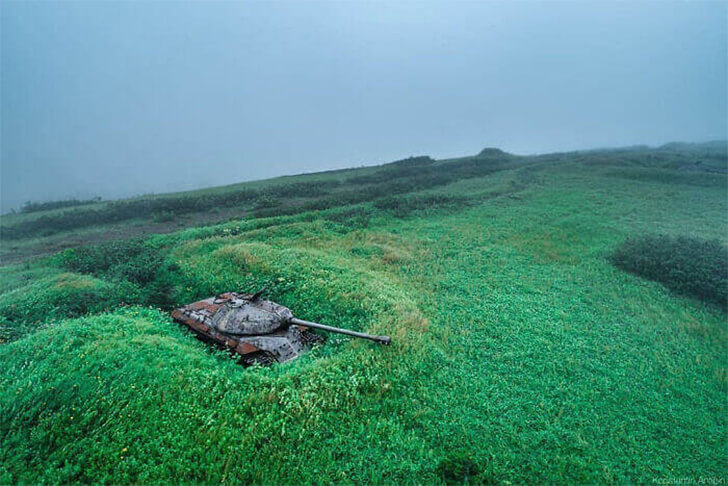 Situated in the Kuril Islands, part of the Yuzhno-Kurilsky District of Sakhalin Oblast, Russia, the tank has become one with its surroundings. This surreal sight feels like a scene from a forgotten war movie, where this sleeping iron giant awaits orders. It’s a powerful journey to the past, where history and nature have merged into an unexpected monument.