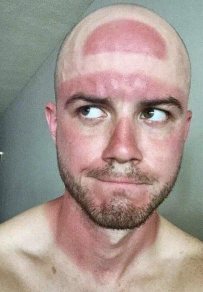 This guy probably felt cool wearing his hat backward under the scorching sun. His entire face and neck got burnt, including that semi-circular patch on his head. That’s why wearing a wide-brimmed hat and applying sunscreen on exposed areas before stepping out during the day is advisable.