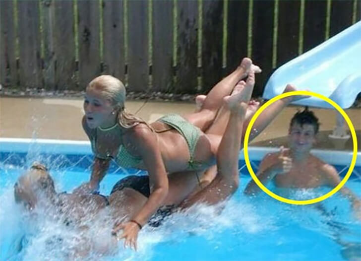 Meanwhile, the boy looks like he is posing for an image while chaos ensues. Although according to a 2020 survey, one in five adults relive their bladders in pools, so there’s always the possibility that he was ‘busy.’ And contrary to popular belief, no color-changing chemical exists to indicate when someone urinates in a swimming pool.