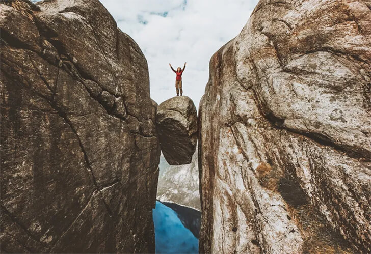 Get ready for an adrenaline-pumping adventure as we take you to the heart-stopping Kjeragbolten, Norway’s ultimate thrill-seeker’s paradise! Perched precariously between two sheer cliffs, Kjeragbolten is a massive boulder wedged in a jaw-dropping crevice, daring everyone to test their bravery. Those with a fear of heights may prefer to miss this experience!