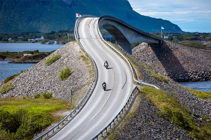 Venture onto Norway’s Atlantic Road or Atlanterhavsveien, which makes for a stunning ride. This engineering marvel stretches across the mighty Norwegian Sea, inviting thrill-seekers and travelers to embark on an exhilarating journey. As you cruise on the asphalt, prepare for a symphony of breathtaking vistas and heart-pounding encounters with wild elements.