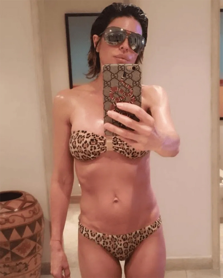 In a chic leopard-print bikini and oversized sunglasses, Lisa Rinna exudes timeless Hollywood glamor. She’s well-known not just for her dramatic roles on Days of Our Lives and Melrose Place but also as a dynamic personality on The Real Housewives of Beverly Hills. Her youthful, vibrant look reflects her commitment to maintaining a fit and healthy lifestyle.