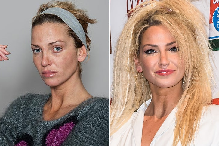 Beauty products can definitely change one’s appearance, but the former Girls Aloud singer Sarah Harding almost looks like a different woman when she has no products on her face. You can pick your own favorite Harding look, but we love the way her big blue eyes and full lips pop up in her fresh-faced photo.