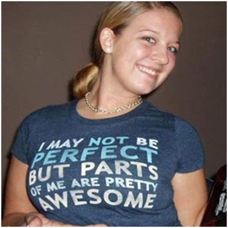 This T-shirt slogan is a sarcastic take on that addictive belief system that shapes us as a society. It gently reminds the onlookers that none of us are perfect. Yes, some of us might boast an ideal body, but that does not make us perfect. As the hourglass-shaped icon Marilyn Monroe once said, “Imperfection is beauty.”