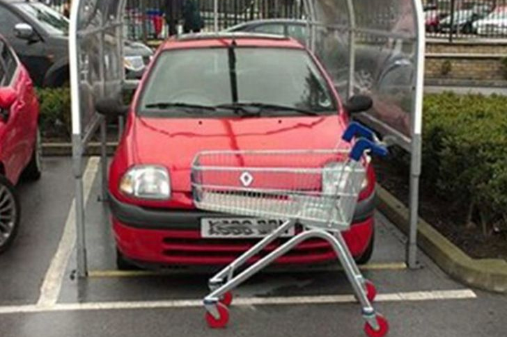 So we surmise that the guy removed the only cart in the area and forced his ride to the slot. Unfortunately, stray carts are a big frustration among drivers. According to Scientific American, supermarkets tried to address this issue by adding receptacles and even implementing a rental system.