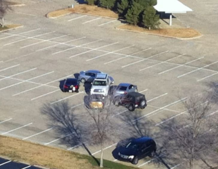 Parking can be sometimes hard, especially on a packed lot with many vehicles around. But if there are so many slots, then parking sloppily is just an annoying move. And this photo is an example that other drivers simply wouldn’t tolerate this behavior—even on an empty lot.