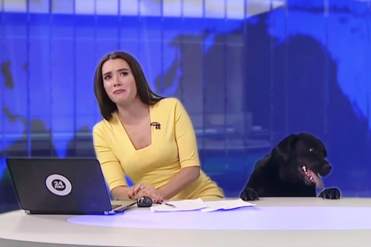 Während sie gerade ihrer Arbeit als Moderatorin nachging, spürte sie plötzlich etwas unter ihrem Schreibtisch, musste aber weiter moderieren und ernsthaft bleiben.
