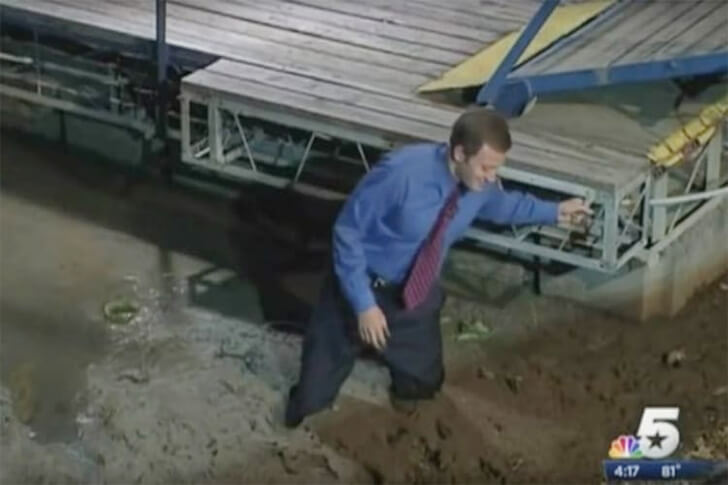 In der Berichterstattung ist es wichtig, den Zuschauern ein klares Bild von der Situation zu vermitteln. Dieser Reporter wollte das im Zusammenhang mit dem sinkenden Wasserstand eines Sees tun und demonstrieren, wie trocken der Boden ist. Eine lobenswerte Idee, bis der Reporter entschied, auf den Boden zu springen, um die vermeintliche Trockenheit zu beweisen. Wie der Screenshot zeigt, war der Boden allerdings alles andere als trocken und der Reporter blieb im Schlamm stecken.