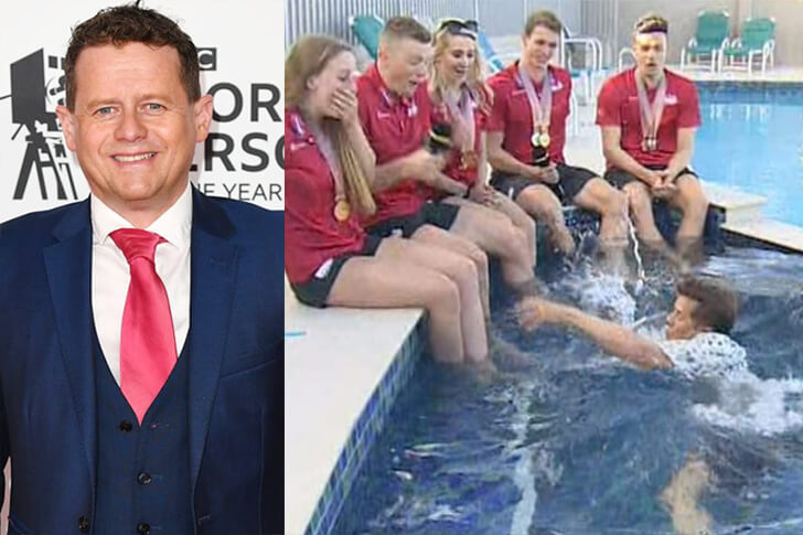 Während der Commonwealth Games in England 2018 führte der BBC-Sportmoderator Mike Bushell viele Interviews mit den Schwimmern. Dabei nutzte er auch manchmal die Redewendung “ins kalte Wasser springen”. Wenn er da nur schon geahnt hätte, dass diese Metapher plötzlich zur Realität für ihn wird!