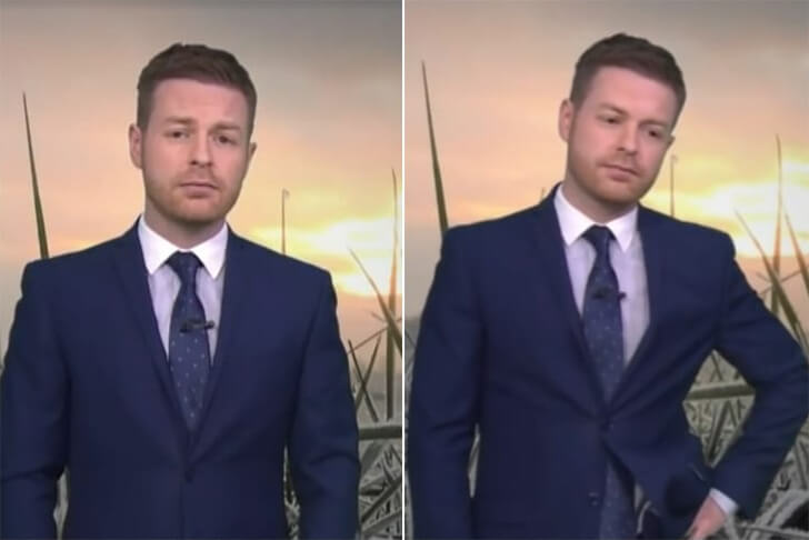 Das musste auch Meteorologe Tomasz Schafernaker im Jahr 2018 erleben. Er war sich nicht bewusst, dass die Kamera bereits auf ihn gerichtet war und sagte mehrmals “Hallo” in die Kamera, ohne zu realisieren, dass die Aufnahme schon begonnen hatte. Als niemand antwortete, begann er, seine Kleidung zu richten. Armer Kerl! Seine Verwirrung ist gut nachvollziehbar, aber es hätte natürlich auch viel schlimmer kommen können.