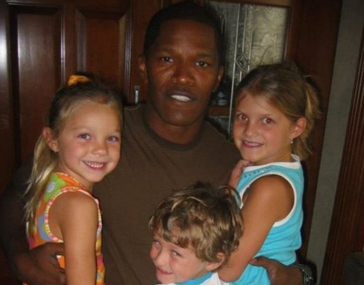 This is a picture of Jamie Foxx with the nephew and nieces of the woman he was dating back when he played Ray Charles in the movie Ray and won an Academy Award for that same role. Jamie is a well-recognized singer and actor. He has recently made headlines for apparently calling it quits with Katie Holmes. The two have had a very private relationship throughout the years. Jamie’s voice can be heard in the new Chrysler car brand announcements. The first one was released in March 2019, where Jamie gave voice to a minivan of the Chrysler brand. Three more ads will be released in 2019.