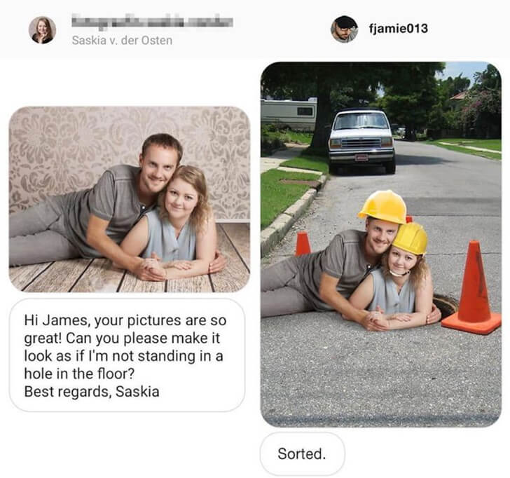 During the time that a woman is striking a pose for a couple’s image, it seems as if her head is about to emerge through a hole in the ground. When she sought Fridman’s assistance, she ought to have realized that she wouldn’t receive precisely what was needed.