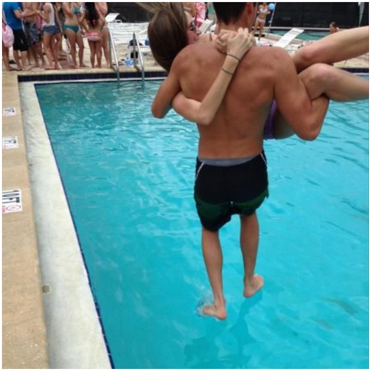 This shot is so perfectly timed you would have to look more than twice to understand what is going on, but it’s just a guy jumping into the pool with a woman in his arms. Now he’s got a story to tell about the time he was a superhero, and has proof of it too!